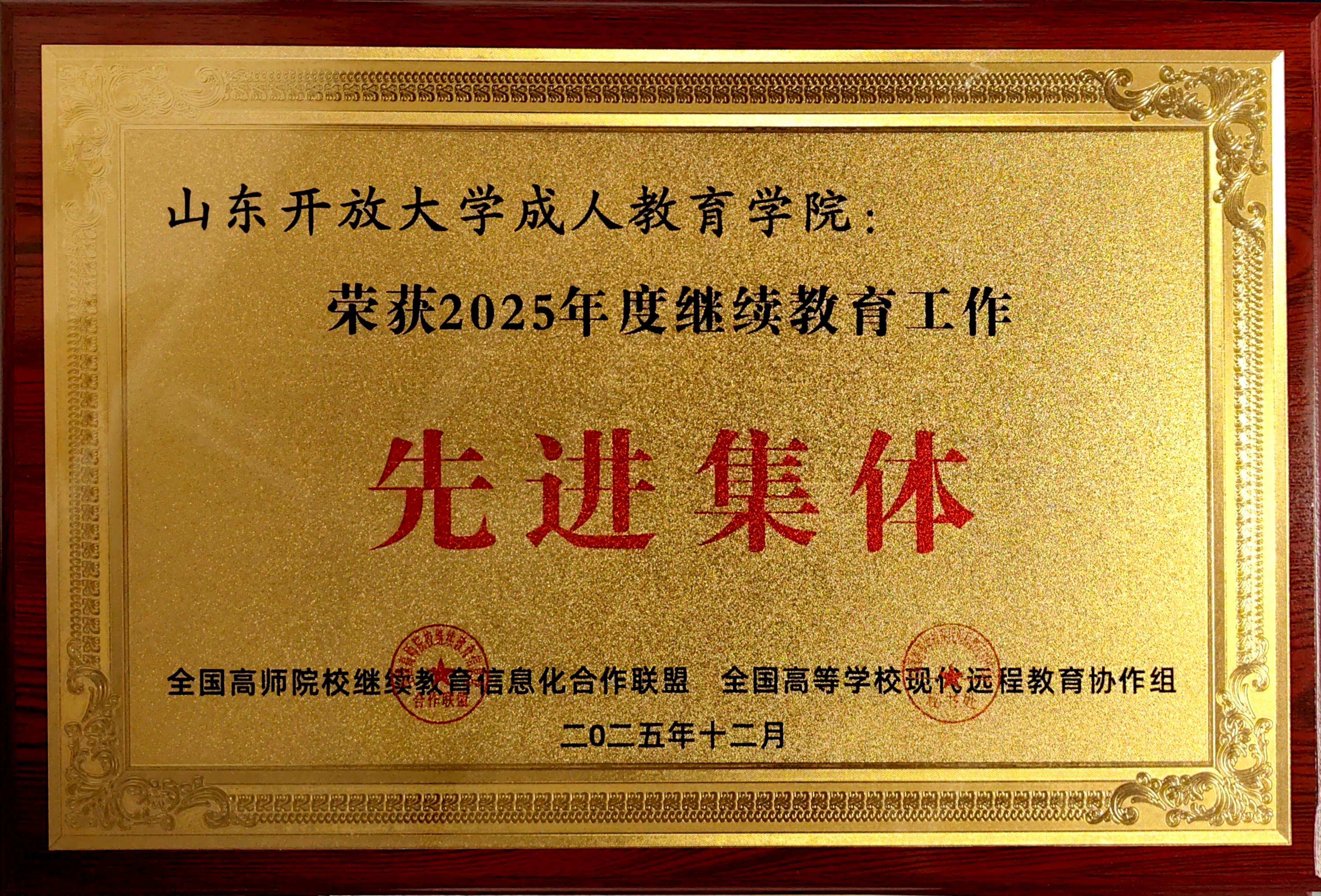 12月15日,全国高师院校继续教育信息化合作联盟年会在广西师范大学隆重召开。会上,由全国高师院校继续教育信息化合作联盟与全国高等学校现代远程教育协作组共同组织评选的2025年度继续教育工作“先进集体”结果正式揭晓,山东开放大学成人教育学院凭借扎实的工作成效和突出的社会贡献,成功获评“先进集体”荣誉称号。