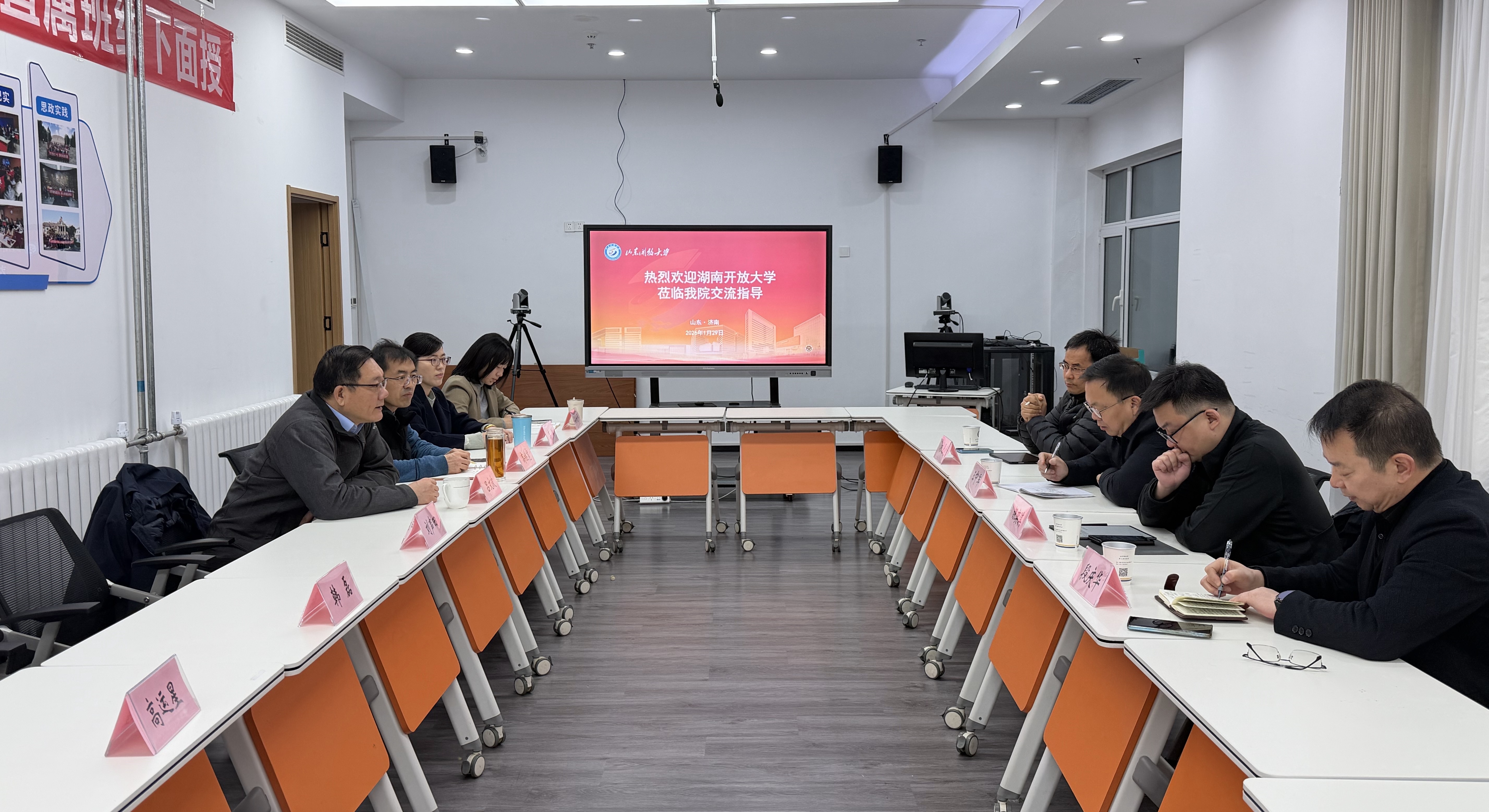 1月29日上午,湖南开放大学教务处王中军处长一行4人莅临我校,围绕成人教育数字化转型与终身学习平台建设开展专题调研交流。学校党委委员、副校长吕文波,成人教育学院院长高继宽、信息技术中心副主任韩磊及相关科室负责人热情接待并参与座谈。